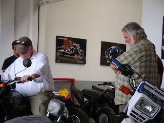 We were happy to hear that our friends Clarke and Breenie will have their Visas and soon will travel to Quito to get their Cedulas. Of course this has sent Clarke into a fit to go get his Motorcycle. Randy is overwhelmed with desire as well and has decided to get one too. Friday they took, (dragged) both Brennie and I along to witness this great event... it took all day...At our first stop after about an hour Clarkes guy found two bikes of the color that they were interested in, on the other side of town. So off we went on the bus to go talk to them. Once we get there we have to wait for the specific person who was contacted from the other guy at the first place. At this point Brennie and I head off to Corral to see if we can find a steamer for Randy. After a unfruitful search we return just about the time Clarke leaps to his feet shaking his Spanish translator saying some in a very upset tone. Brennie and I decide they really dont want us there so we head off to eat as we are both starving. They seem to think its all worked out and will be along soon.. Brennie and I eat, and wait and wait and call...nope not done yet.. so we get ice cream... and wait. Well they do finally show up and say that all was well in the world. They were able to come to terms without blows and deposits were made and receipts were given. So now they are assured that their motorycycle will be ready by Wednesday.