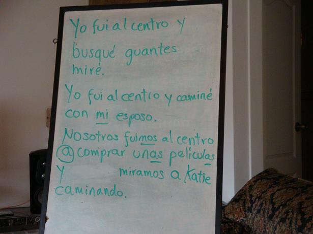 So I think my sentence to practice for class today will be.. hoy me escribió un nuevo blog sobre nuestra clase (today I wrote a new blog about our class). Better start now.. and repeat 100 times....